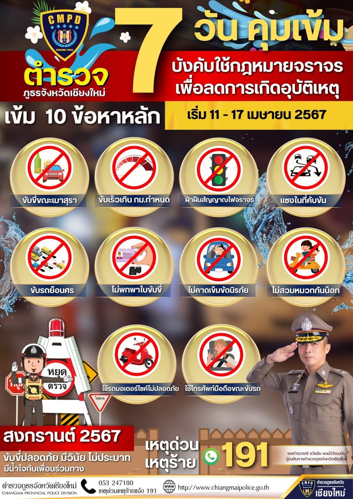 สถานีตำรวจภูธรดอยเต่า บังคับใช้กฎหมายจราจร 10 ข้อหาหลัก ช่วงเทศกาลสงกรานต์ 2567