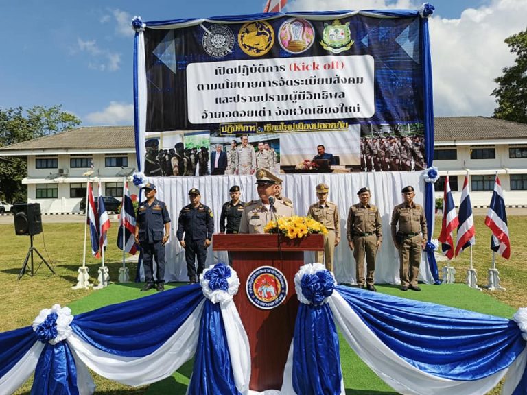 โดยการอำนวยการของ พ.ต.อ.บัญชา อินถา ผกก.สภ.ดอยเต่า มอบหมายให้ พ.ต.ท.บุญญานุภาพ ไชยมาลา รอง ผกก.ป.ฯ พร้อมด้วยข้าราชการตำรวจ สภ.ดอยเต่า ร่วมกับข้าราชการตำรวจ สภ.แม่กา ฝ่ายปกครอง ชมรมกำนันผู้ใหญ่บ้าน อ.ดอยเต่า หน่วยป้องกันรักษาป่าที่ ชม.16 อุทยานแห่งชาติ รับมอบนโยบายระดมกวาดล้าง จัดระเบียบสังคมและปราบปรามผู้มีอิทธิพล โดยมีนายสราวุฒิ ธนาเจริญสกุล ผู้ตรวจราชการกรมการปกครอง เขต 15 เป็นประธานในพิธีเปิดปฏิบัติการฯ ได้มอบนโยบายเปิดปฏิบัติการ (kickoff) ตามนโยบายการจัดระเบียบสังคมและปราบปรามผู้มีอิทธิพล ณ ลานที่ว่าการอำเภอดอยเต่า