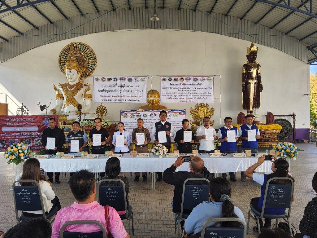พร้อมประชาชนในชุมชน หมู่บ้านเป้าหมาย บ้านแปลง 5 หมู่ที่ 3 และ บ้านหนองบัวคำ หมู่ที่ 3 ต.ท่าเดื่อ อ.ดอยเต่า จ.เชียงใหม่ ได้ร่วมพิธีเปิด “โครงการดำเนินงานตำบลยั่งยืน เพื่อแก้ไขปัญหายาเสพติดแบบครบวงจร ตามยุทธศาสตร์ชาติ ประจำปีงบประมาณ พ.ศ. 2569 พร้อมร่วมลงนามบันทึกข้อตกลงความร่วมมือ (MOU) ระหว่างหน่วยงานที่เกี่ยวข้อง ณ ศาลาหลวงวัดแปลงห้า ต.ท่าเดื่อ อ.ดอยเต่า จ.เชียงใหม่