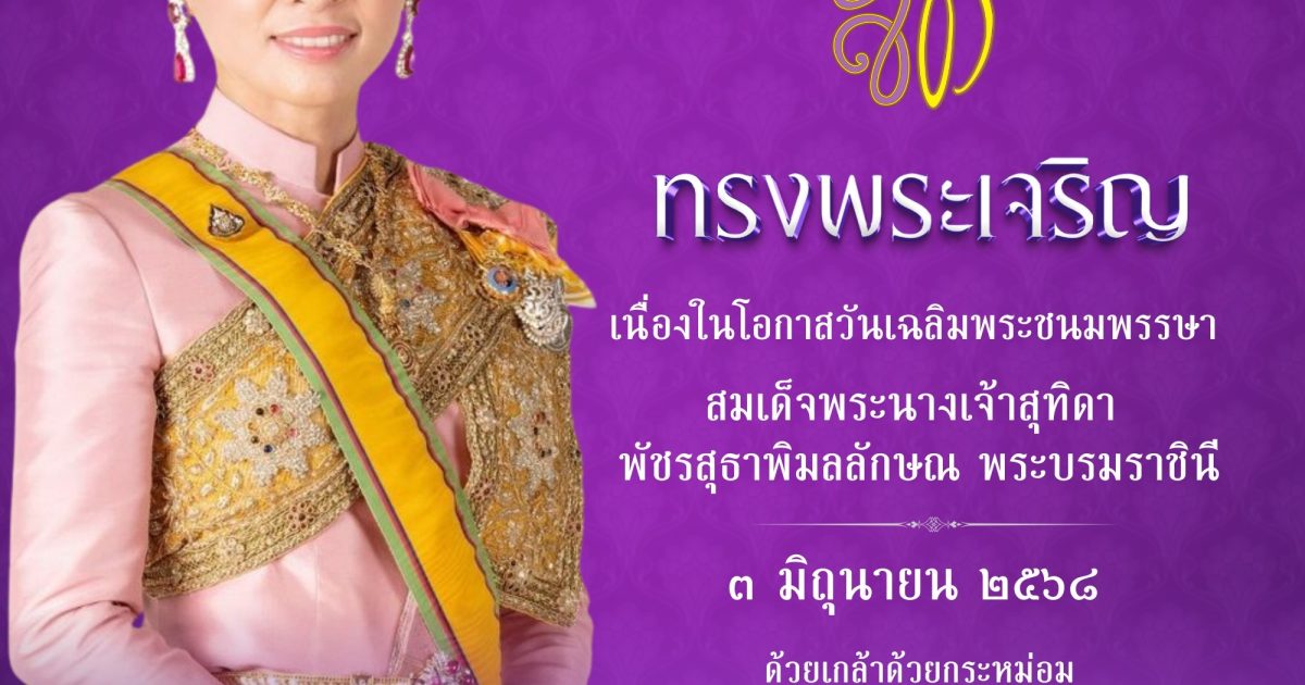 ๓ มิถุนายน ๒๕๖๘ วันเฉลิมพระชนมพรรษา สมเด็จพระนางเจ้าสุทิดา พัชรสุธาพิมลลักษณ พระบรมราชีนี