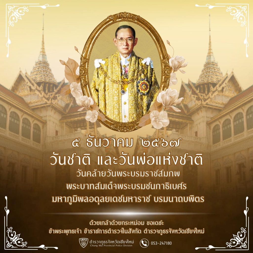 ๕ ธันวาคม ๒๕๖๗ วันชาติ และ วันพ่อแห่งชาติ 5 ธันวาคม 2567 โดย admdoitao / ข่าวประชาสัมพันธ์ ๕ ธันวาคม ๒๕๖๗ วันชาติ และ วันพ่อแห่งชาติวันคล้ายวันบรมพระราชสมภพพระบาทสมเด็จพระบรมชนกาธิเบศร มหาภูมิพลอดุลยเดชมหาราช บรมนาถบพิตร รัชกาลที่ ๙น้อมรําลึกในพระมหากรุณาธิคุณหาที่สุดมิได้ข้าพระพุทธเจ้า ข้าราชการตำรวจในสังกัด สถานีตำรวจภูธรดอยเต่า Post Views: 16 FacebookFacebookXXLINELine