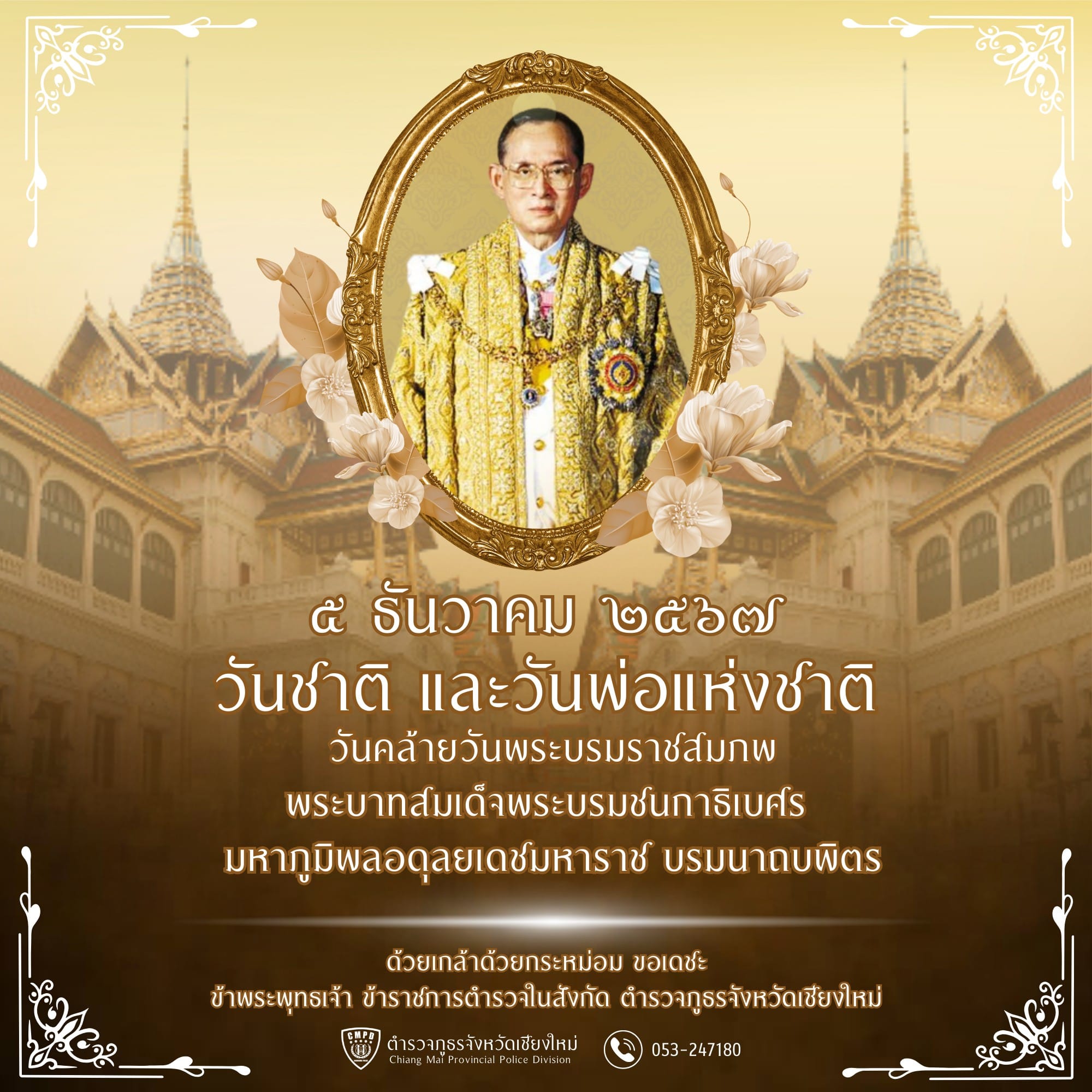 ๕ ธันวาคม ๒๕๖๗ วันชาติ และ วันพ่อแห่งชาติ วันคล้ายวันบรมพระราชสมภพพระบาทสมเด็จพระบรมชนกาธิเบศร มหาภู