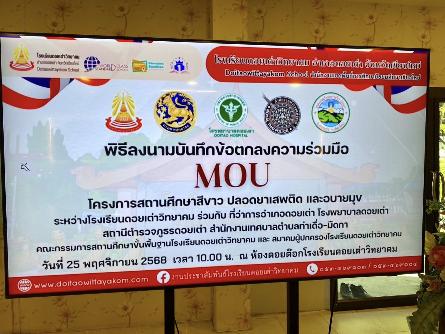 สภ.ดอยเต่า ร่วมทำบันทึกข้อตกลงความร่วมมือ (mou)ในการดำเนินงานสถานศึกษาสีขาว ปลอดยาเสพติดและอบายมุข