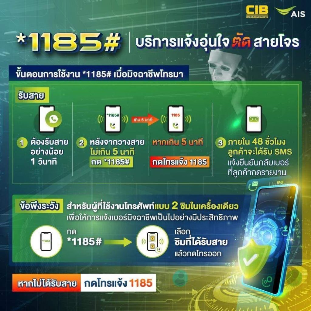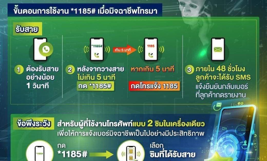 ขั้นตอนการใช้งาน บริการ *1185# แจ้งอุ่นใจตัดสายโจร