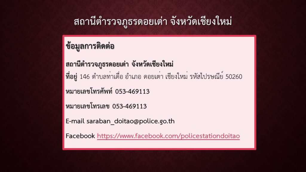 ช่องทางการรับฟังความคิดเห็น และข้อเสนอแนะ สถานีตำรวจภูธรดอยเต่า
